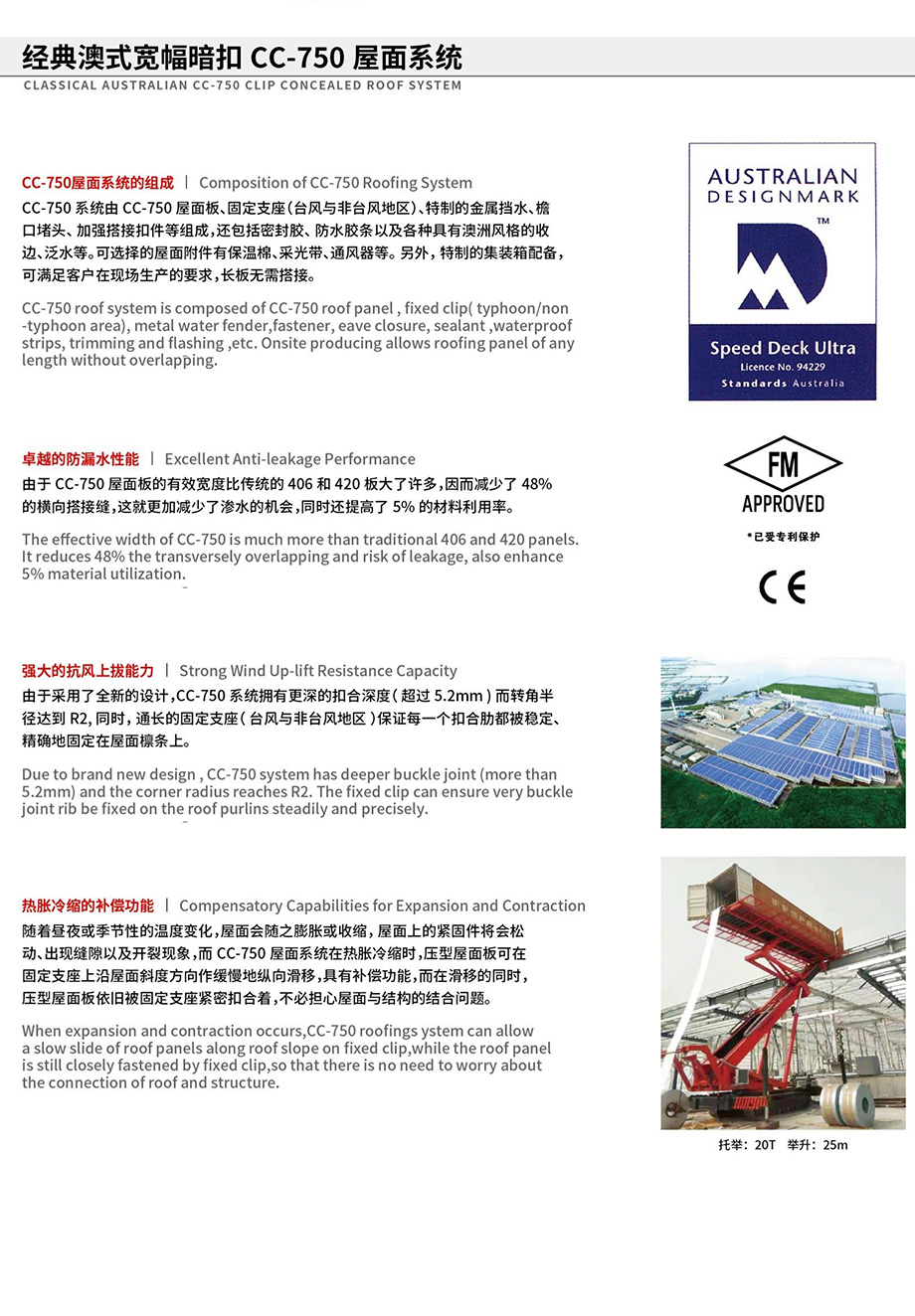 經(jīng)典澳式寬幅暗扣CC-750屋面系統(tǒng)